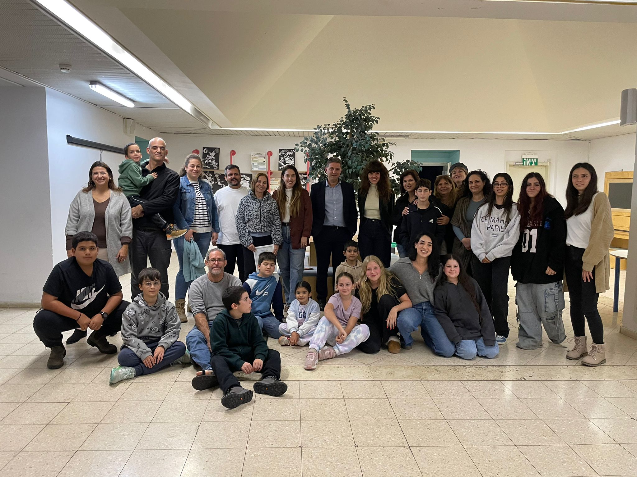 מחבקים את הילדים במודיעין. ראש העיר חיים ביבס עם הדר קס והמשפחות במפגש המרגש במרכז חמניות.