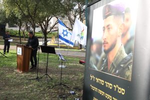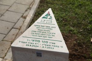 בני המשפחה ונציגי העירייה חושפים את אבן הזיכרון במשעול על שם סמל ראשון סהר סודאי ז"ל ברחוב עמק האלה. צילום: דוברות עיריית מודיעין מכבים רעות.