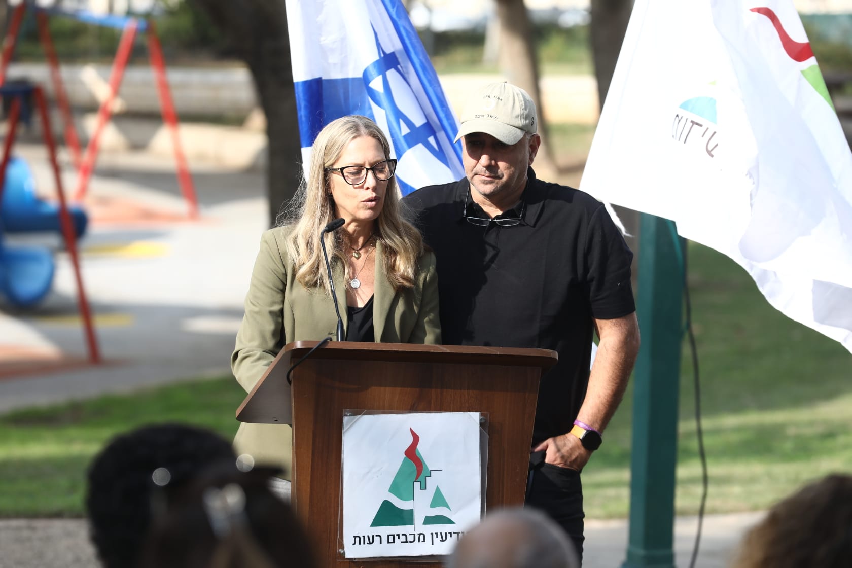 בני המשפחה ונציגי העירייה חושפים את אבן הזיכרון במשעול על שם סמל ראשון סהר סודאי ז"ל ברחוב עמק האלה. צילום: דוברות עיריית מודיעין מכבים רעות.