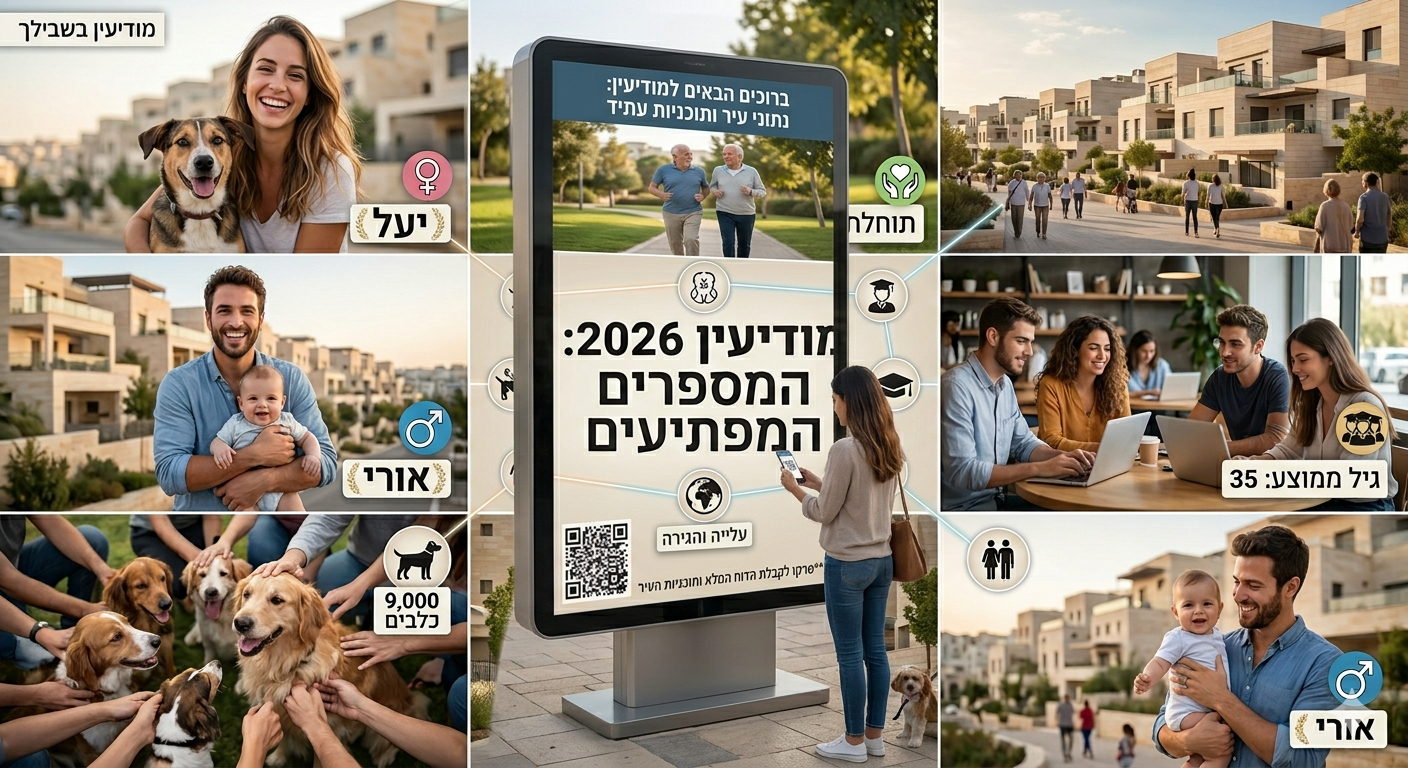 מודיעין מכבים רעות ממשיכה לצמוח, להשתנות ולהפתיע. לקראת ערב יום העצמאות ה-78 של מדינת ישראל, לשכת הדוברות בעירייה מפרסמת את הנתונים המעודכנים (נכון לאפריל 2026), והתמונה המצטיירת היא של עיר צעירה, משכילה, עם אריכות ימים יוצאת דופן ואהבה גדולה להולכים על ארבע.